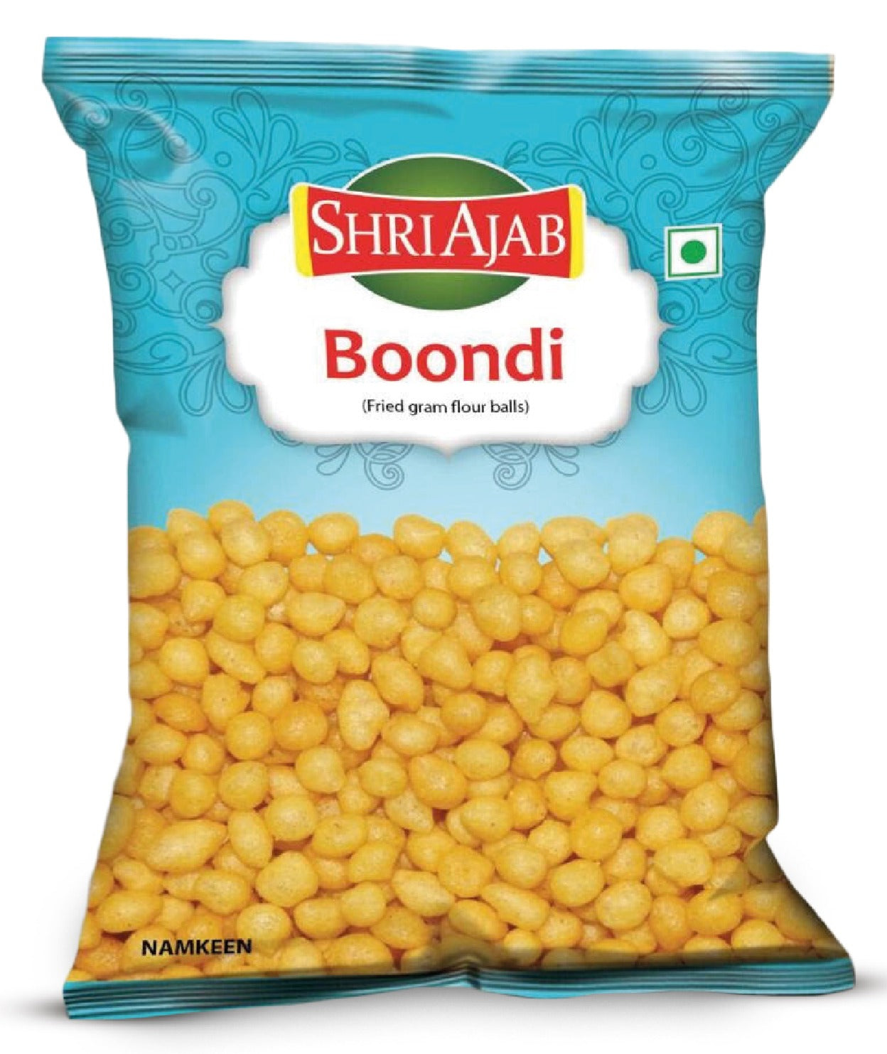 Sometimes, simplicity is the real delight. Shri Ajab Foods’ Sada Boondi is made from fine gram flour batter, gently fried into tiny golden pearls that are light, airy, and irresistibly crunchy. Mild in taste yet rich in texture, it lets the natural goodness of gram flour shine through.